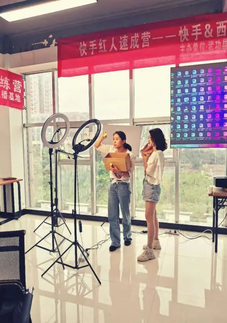 7月16日,西北网红直播基地联合快手总部,邀请快手官方账号运营负责人及千万网红操盘手到武功举办联合孵化训练营。为推动产教深度融合,校企紧密合作,落实伟德体育电商直播基地建设,刚放暑假的胡一波和晋军刚主任主动报名参加了为期4天的训练营。当天出席开营仪式的有武功县人民政府副县长高论、武功县电子商务服务中心席健雄主任、快手农业产业带负责人石荷露女士等。