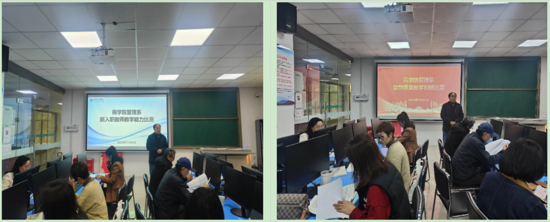 比赛伊始,系主任王斌副教授强调了系里开展教学比赛的意义。管理系始终注重教学质量的建设与提升,从教学源头抓起实行“双赛并行”,一方面加强教师自身教学能力的提升,另一方面注重带领员工参加学科竞赛夯实“学”与“用”的结合。此次,以智慧课堂教学创新比赛和新入职教师教学能力比赛为抓手,深入推进教学质量的提升,推动教师积极探索智慧课堂教学新方法、新模式,提升课堂教学质量和效果;以传、帮、带的指导思想帮助新教师站稳讲台,明确努力方向,学“老”教师的教学成果,展“新”教师的教学风采。